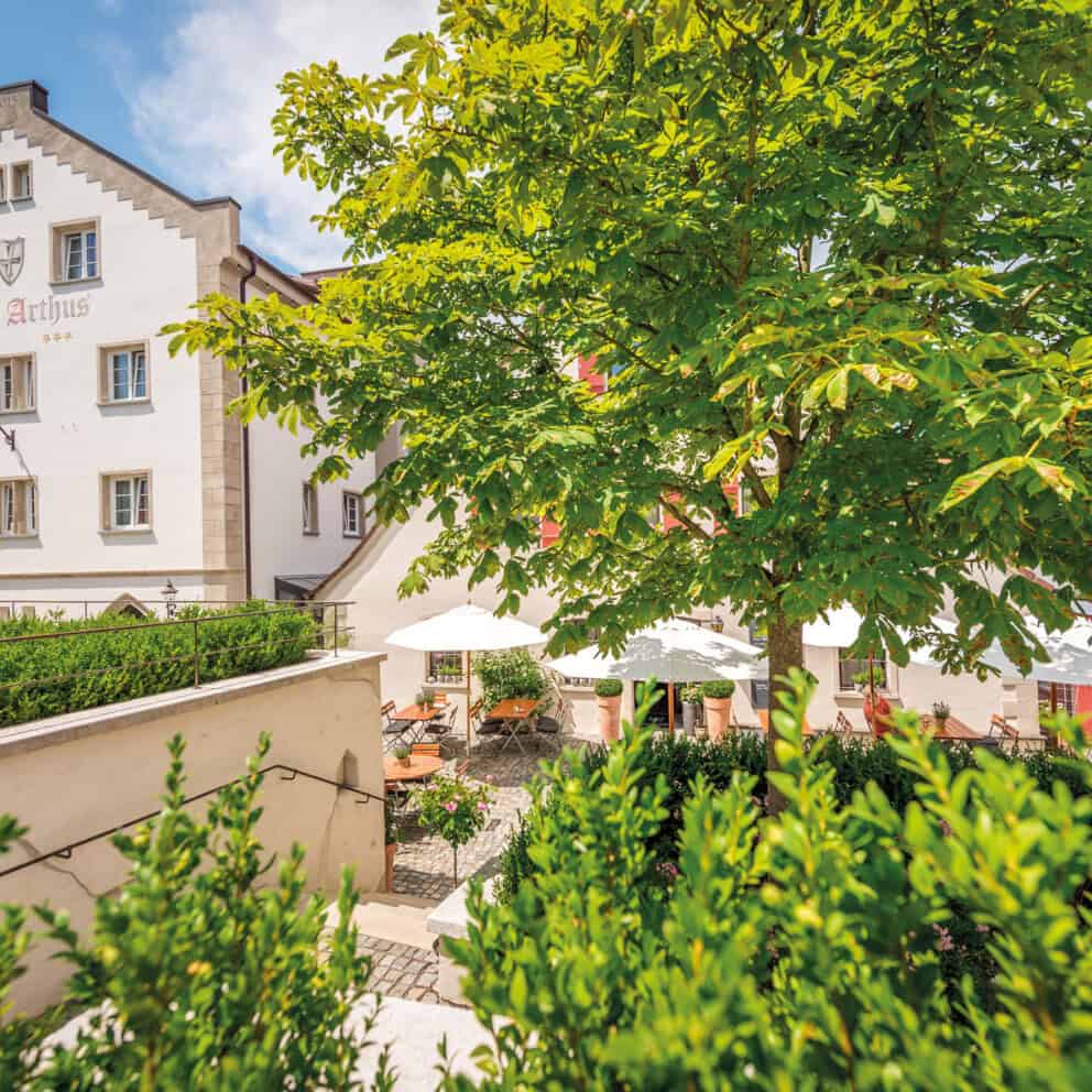 Der See zeigt eine ganze Palette an Blautönen, am Ufer ringsum färben sich die Bäume gelb, rot und braun. Wie eine Kompassnadel, die in den herbstlichen Himmel zeigt, ragt die Kirchturmspitze aus dem charmanten Dorf Berlingen hervor. Das ist der westliche Bodensee. Hier bietet ein dreieinhalb Kilometer langer Panorama-Rundweg einmalige Aussichten auf den Untersee, die Halbinseln Höri und Reichenau sowie weit zu den Vulkanen im Hegau. In Berlingen selbst befindet sich zudem das Geburts-, Arbeits- und Wohnhaus des international anerkannten Kunstmalers Adolf Dietrich. Der rund zwölf Kilometer lange Steckborner Rundwanderweg gilt als einer der schönsten am Bodensee. Und wer beim Wandern noch knifflige Fragen rund um Meister Petz, Lampe und Reineke lösen möchte, der schlägt den elf Kilometer langen Fabelweg nach Ermatingen ein.
