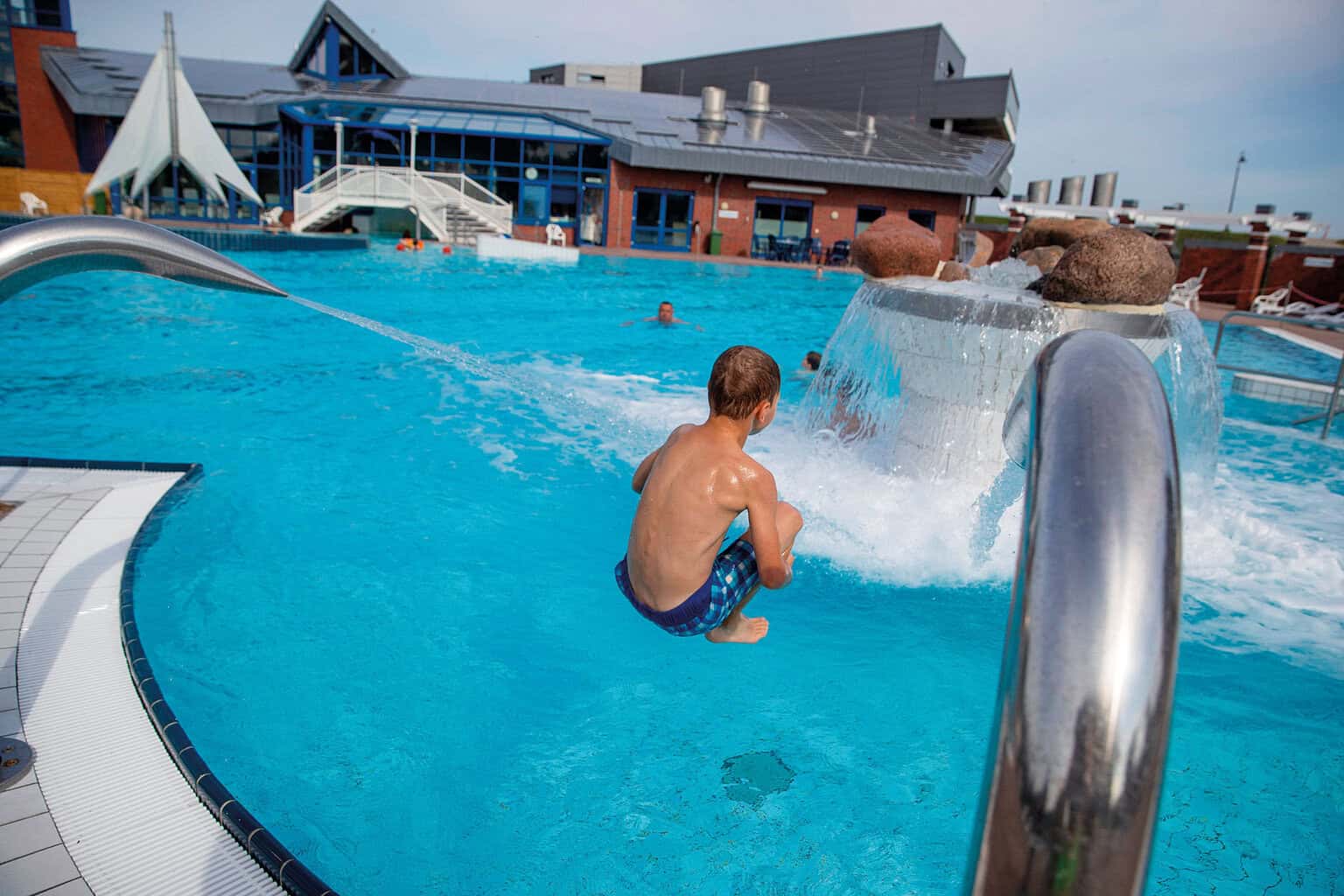 Wer auch bei Niedrigwasser schwimmen möchte, ist im DanGastQuellbad an der richtigen Adresse – zahlreiche Becken, Rutschen und das mit Jod-Sole aus eigener Quelle angereicherte Wasser sorgen für ausgelassenen Badespaß.