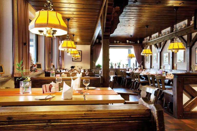 Auch das Drumherum überzeugt – ein Garten mit Terrasse schafft Raum für Ruhe, während der nahe Spessart zahlreiche Wanderwege für Aktivurlauber bereithält. Ob ein Ausflug in das romantische Bad Orb, in die Weinregion Unterfranken oder ein Städtetrip nach Hanau – die Lage macht den Flörsbacher Hof zum idealen Ausgangspunkt für Entdeckungstouren.