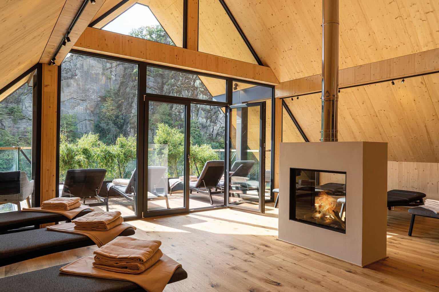 Kulinarisch setzt das Haus auf Regionalität und Vielfalt. Ob im eleganten Restaurant, in der Kaminlounge, auf der überdachten Sonnenterrasse oder im Weingarten mit Pizzaofen – für jede Stimmung gibt es den passenden Rahmen. Die Küche arbeitet mit saisonalen Produkten der Region und verbindet Bodenständigkeit mit kreativen Akzenten. Der Wellnessbereich – das “Ruheland” – erstreckt sich über zwei Etagen: mit Saunen, Soledampfbad, Massageraum, Fitnessgeräten und lichtdurchfluteten Ruhezonen mit Blick auf die Ahrberge. Ein Ort, an dem Entspannung und Inspiration Hand in Hand gehen.