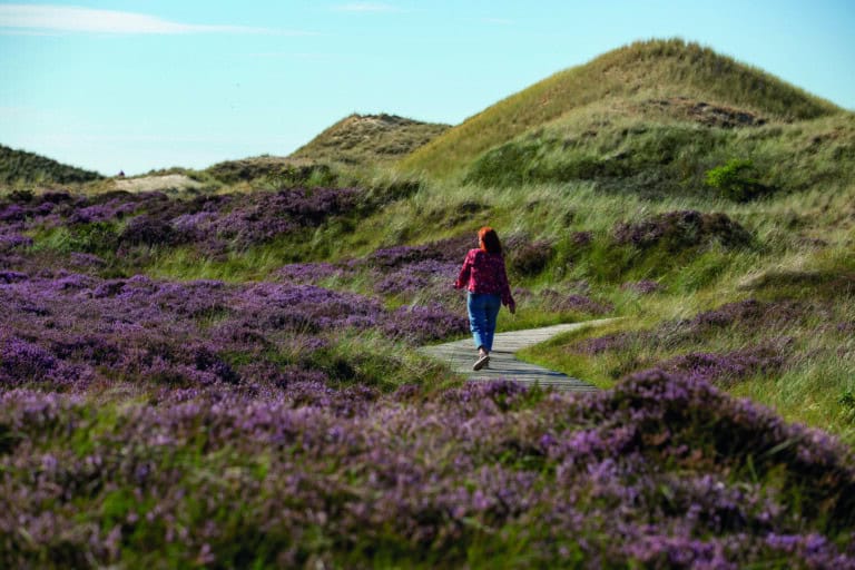 Es ist ein jährlich beeindruckendes Farbspektakel, wenn im Spätsommer die Amrumer Heide in ein tiefes Lila-Violet getaucht wird. Während dieser besonderen Zeit, verwandelt sich die Insel in ein wahres Farbenmeer. Auf Amrum erstrecken sich etwa 65 Hektar Geest- und Dünenheide, die während der Blütezeit ein atemberaubendes Naturschauspiel bieten. Dieses farbenfrohe Schauspiel ist nicht nur schön anzusehen, sondern auch ein wichtiger Bestandteil des natürlichen Ökosystems der Insel. Seltene Insekten wie der Bläuling oder die Heidehummel, haben hier ihr natürliches Habitat.